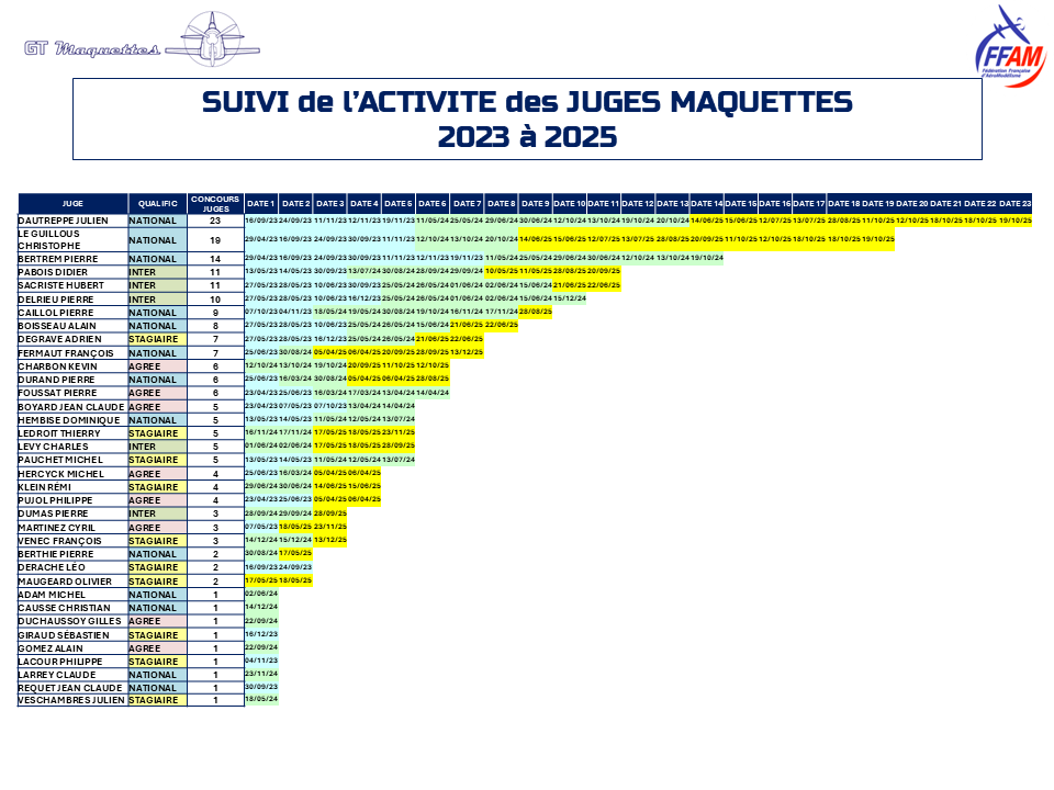 TOUT CE QUI CONCERNE LES JUGES Tout ce qui concerne le jugement 21 janvier 2026 29 janvier 2026 Je partageCette rubrique regroupe les documents directement liés à l’activité de jugement: Le guide de déontologie qui décrit ce qui est attendu d'un juge maquettes Le "Challenge juges maquettes" La liste des juges et leur localisation Le suivi d'activité des juges Les modalités de passage à une qualification supérieure PASSAGES de QUALIFICATIONS pour les JUGES Equipe de France Maquettes 2026